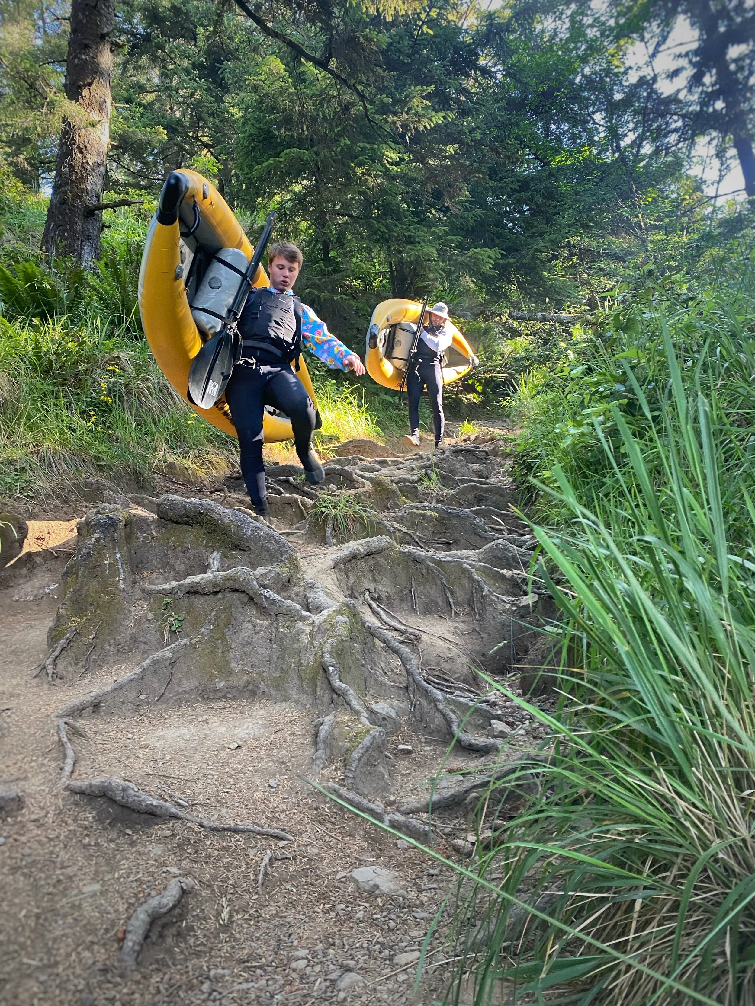 NOTE: This trip can be physically challenging for some, as it requires hiking with fully inflatable kayaks up and down a semi-steep, rocky trail. Single kayaks are typically carried over the shoulder and weigh approximately 30 lbs. Two people carry tandem kayaks and weigh approximately 41 lbs. If you would still like to participate in this trip but are unsure about this portion, don’t worry. We got you! For just $25, we can get your boat to the beach and back for you.